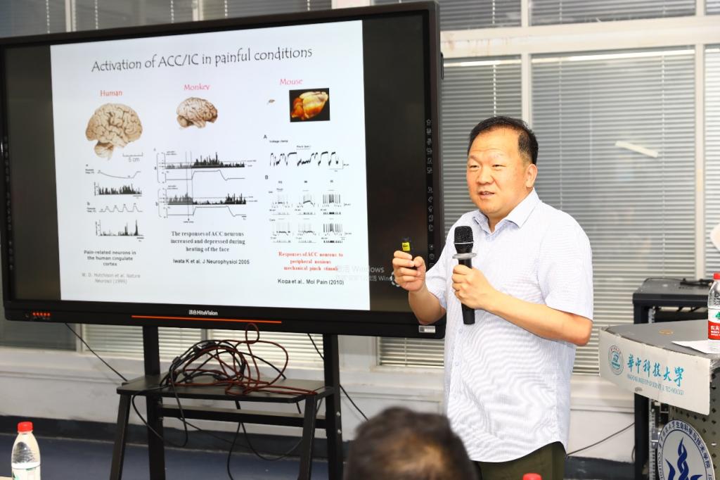 会上卓敏院士向师生介绍了“情绪和脑”、“痛的传递下行易化”、“前额叶扣带回锥体细胞痛苦情感的主机”等科学问题。同时卓敏院士表示艺术和科学不分家,同学们要积极开拓思维,不要仅仅局限在自己的小领域、小问题里面,要创新,要不同概念之间进行碰撞;此外,卓敏院士也对师生们表达了自己的深切希望,未来是属于年轻人的,科学是一项严肃的工作,科学家是人民群众的底线,尤其是药物开发领域,我们更多的是为了解决患者的疾病疼痛,而绝不仅仅是发文章、申专利等,科学家一定要把好关,守住自己的底线。