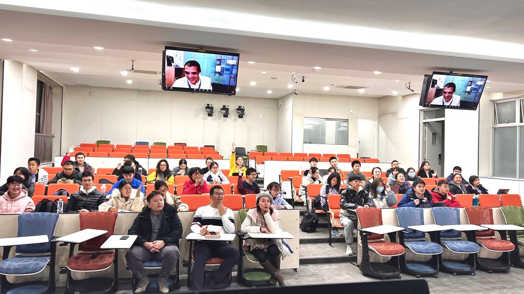 国际一流高校专业教师在课堂上与首届生物科学本科中外合作办学班师生们远程互动教学