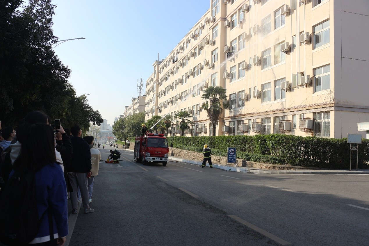 下午15时,演习正式开始。闫云君致辞,他强调,冬季天气干燥,是火灾多发季节,尤其是人群密集的校园更容易发生火灾事故。举办此次消防联合演习活动是为了认真贯彻落实《中华人民共和国消防法》和《永利官网消防管理规定》,加强公司消防管理安全工作,强化师生员工的安全意识,增强防火自救能力,杜绝火灾事故的发生,为师生创造一个良好的安全环境。他希望通过演习,进一步掌握消防知识和扑救初期火灾的基本技能,熟悉逃生技巧,互帮互学,精诚团结,在实践中得到锻炼和成长,共同创建平安和谐校园。