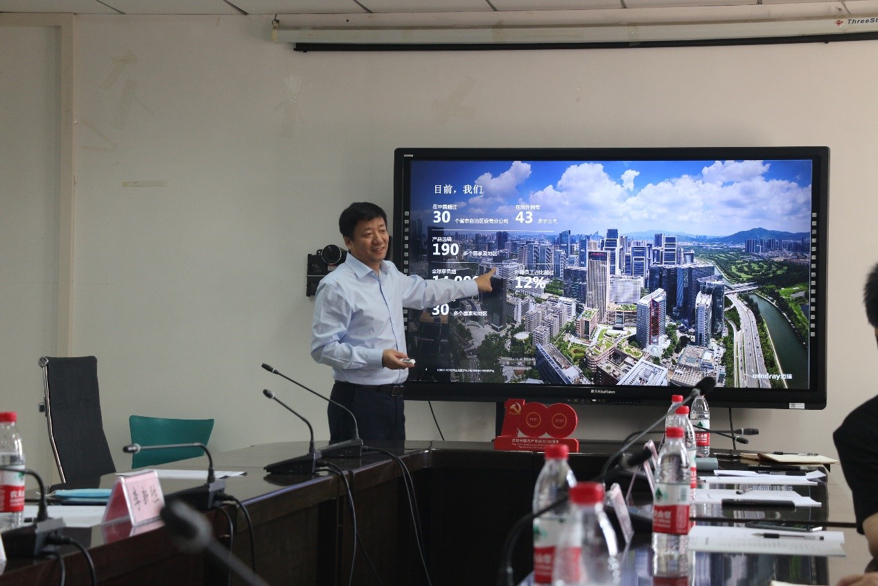 刘笔锋教授向来访人员介绍了公司发展状况。他表示,公司在四十年发展历程中砥砺奋进,在打造国家级仪器平台、建设优势学科、人才培养等方面成效显著。他提到,迈瑞集团在生命科学相关企业领域地位领先,今后公司与迈瑞集团要进一步加强合作,努力探索多渠道合作平台,发挥高校科研和人才培养优势,未来将巩固双方合作契合度,为企业和国家更多输送优秀人才。公司相关领导就公司本科生培养,公司产品等方面做简要介绍。