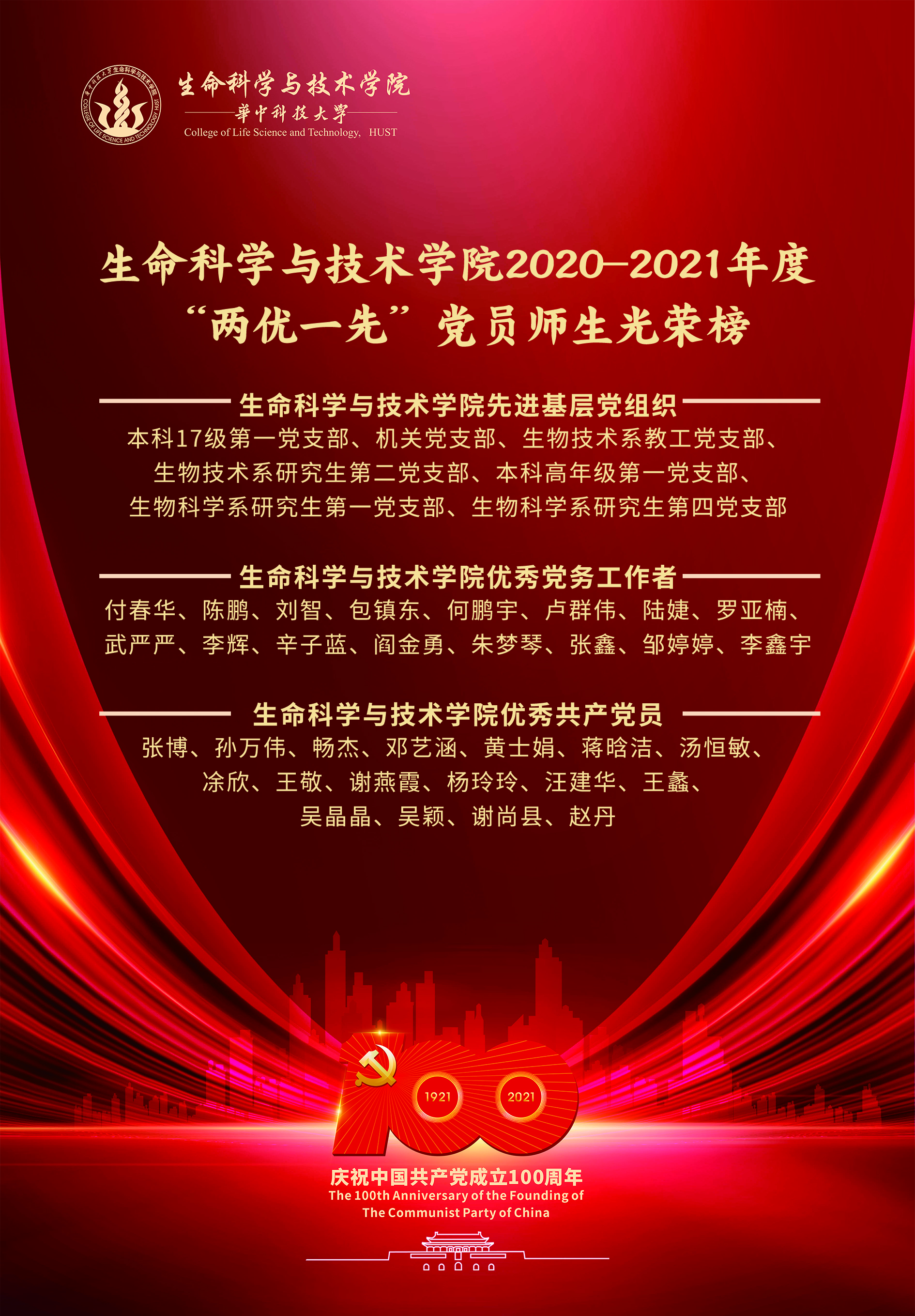 yl7703永利2020-2021年度“两优一先”党员师生光荣榜(排名不分先后)
