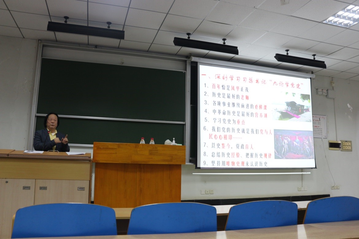 在党史学习教育环节,刘家俊教授以“体悟百年共产党光辉历程 感恩七十年华中大建设发展”为题,从“深刻学习习总书记‘九论学党史’、深刻体会‘三次伟大飞跃’、深刻传承中国共产党的精神谱系及深刻实践我为群众办实事”共四个方面回顾了中国共产党的百年光辉历程和重温了华中大的建设发展之路。通过讲述党在各个时期的实践探索和先锋故事,指导我们从党史学习中汲取营养、资政育人,并传承党的精神谱系及华中大的红色基因。会后部分同学和老师就相关内容与刘教授进行了亲切交流。