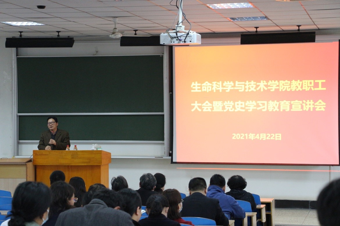 (通讯员:雷敏)4月22日下午,yl7703永利在东12楼F201召开了全院教职工大会暨党史学习教育宣讲会。公司马克思主义研究中心特聘教授刘家俊担任本次党史学习教育主讲人,公司班子成员、各党支部书记、全体教师以及员工代表参加此次活动。
