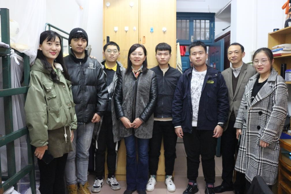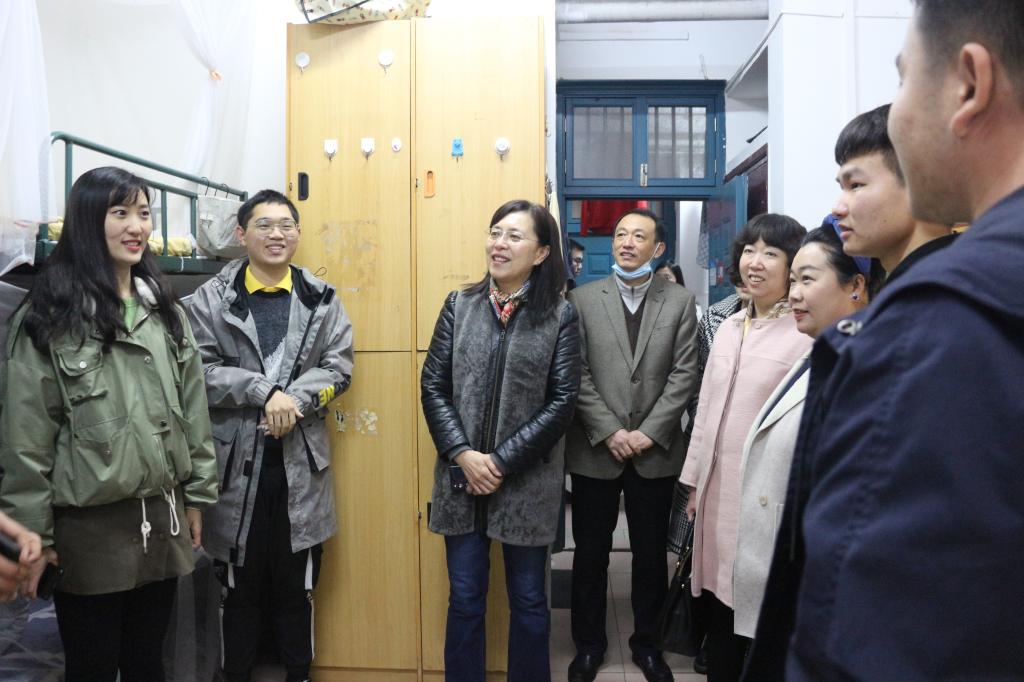 随后湛董事长一行前往韵苑三栋113宿舍,表达了对同学们生活学习的关心后,问及员工们对公司课程统筹安排的建议与员工宿舍环境的适应程度,湛董事长对该寝室新疆的少数民族员工表现出了高度关注,悉心询问了其在衣食住行方面的实际情况。