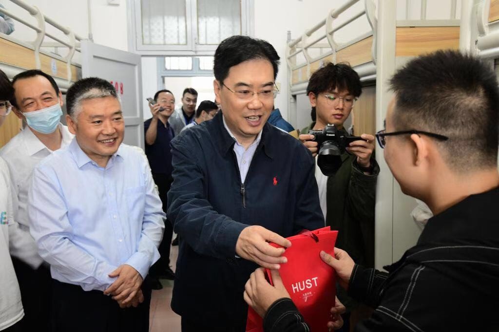 上午11点,邵书记和梁董事长来到公司宿舍韵苑21栋看望新生,并为当天生日的大一新生熊荣鑫送上生日蛋糕和礼物,祝贺他在华中大早日实现梦想。在韵苑21栋药公司2002班员工寝室,邵书记勉励4位医学新生坚定理想信念,练就过硬本事,争取早日为医学事业贡献力量。