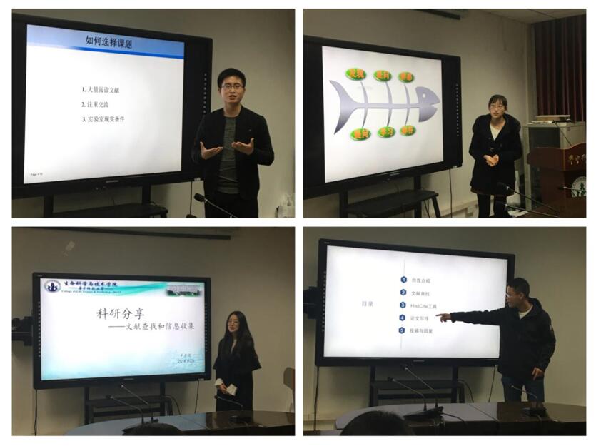 肖晨,生物制药工程2016级直博生。他给同学们操作演示如何利用WOS进行文献检索,如何利用HistCite软件进行引文的历史分析,快速找到最有价值的文献。此外,谈到如何进行英文论文撰写,肖晨同学提出,要积累、要修改。平时进行大量的文献阅读,记录下有用的词汇的句式,对阅读过的文献进行英文小结。文章写好后,要反复修改,并请导师和同学帮忙审查,“文章不厌百遍改”。只有反复雕琢,才能准确达意。