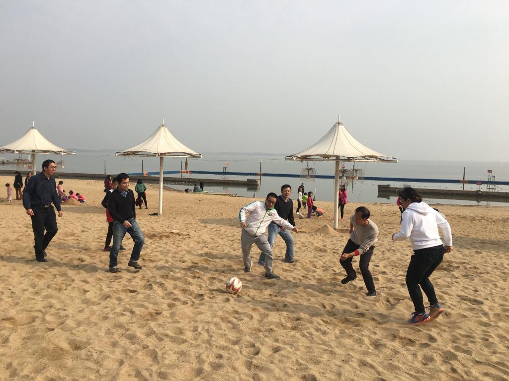 早上8:30,大家准时从公司出发,一路欢声笑语来到梁子湖畔。一下车,大家都被阳光照耀下的梁子湖的秀美景色吸引。有的三五成群沿湖漫步欣赏湖光美景,时不时用手机将美景拍下来;有的泛舟于湖上,集体协作,喊着一致的口号,欢声一片;有的进行沙滩足球对抗,大家分成两组,拼劲全力将球射到对方门框;有的来到果园进行采摘,尽情享受难得的休闲时光。