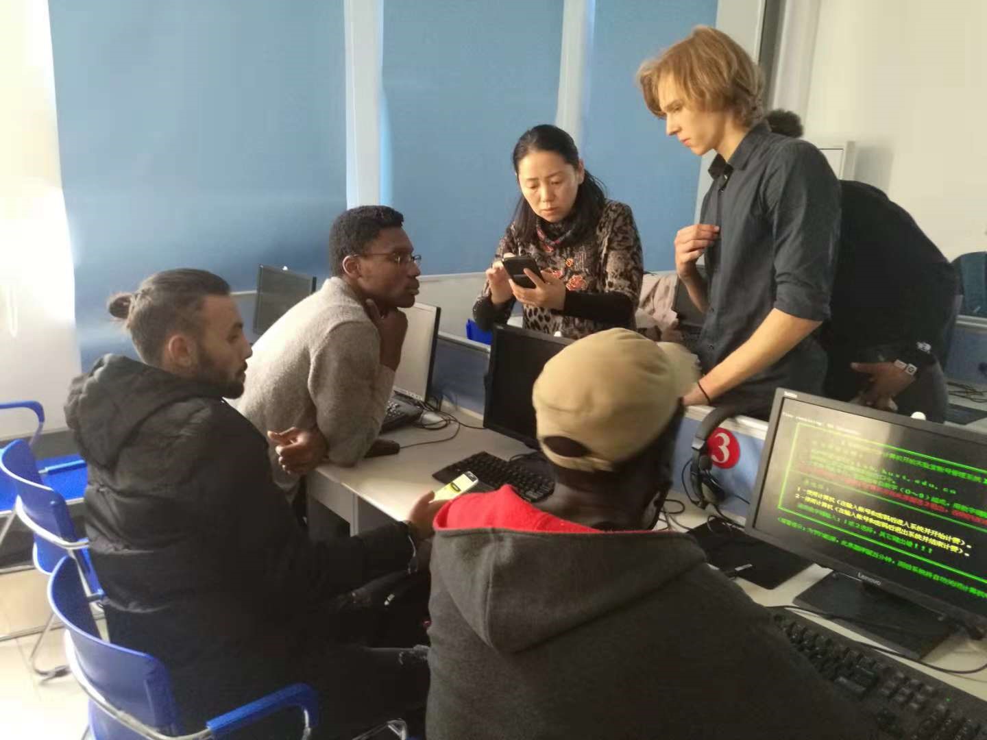 网络与计算中心《计算机与程序设计VB》课程组在了解到国际员工的情况后,决定每周四下午由课程组老师轮流在机房给国际员工们答疑和辅导。老师们在中文授课的同时,考虑他们对用中文表述的复杂概念理解困难,同时用英文辅助解释,使课程更加易于理解,并同时传授VB学习的方法,鼓励他们加强课后练习。数学与统计公司为国际员工推荐了同类的外文数学教材,引导他们将平时自学和集中答疑相结合,并为国际员工建立了答疑群,安排专人为答疑解惑。