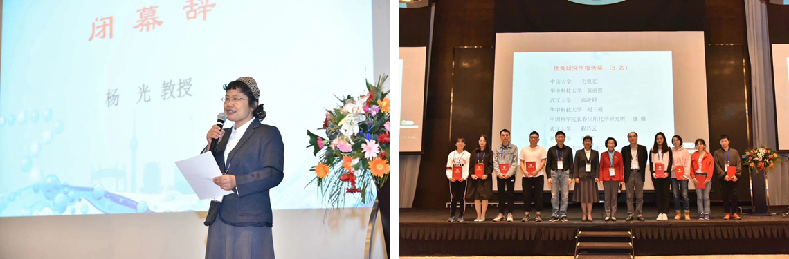 19日下午闭幕式上,张俐娜院士公布了8位优秀研究生报告奖与12位优秀墙报奖获奖名单,并为获奖者颁发证书、奖金并合影留念。会议执行主席杨光教授在闭幕式上对会议进行了总结。