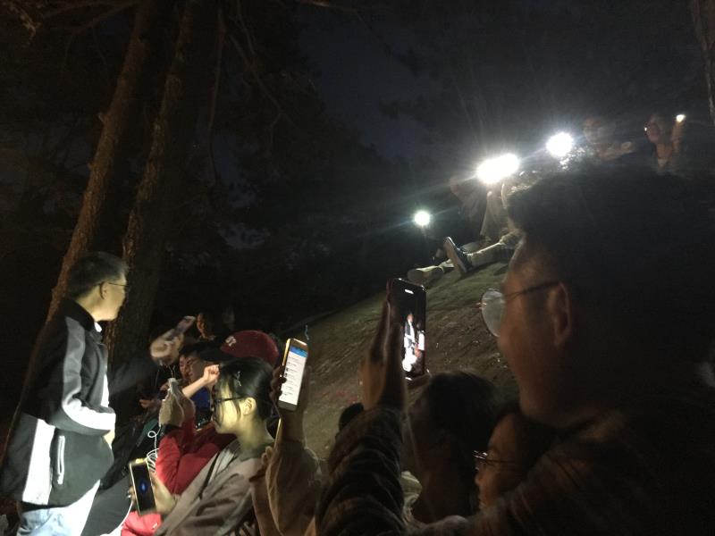 在山水之间,师生一起在月下松林谈论人生理想,于三宝树下感受生命奇迹,在含鄱口眺望鄱阳湖,登五老峰探寻植被垂直分布,走花径,过仙人洞,去大天池,观三叠泉……八天的野外实习时光,栗茂腾教授充分利用讲课间隙和晚上的时间和同学们进行了面对面、心对心的交流和互动。作为班级教师班主任,栗茂腾教授还引导同学们对大一学年进行总结分享收获,并对下一阶段的大学时光进行规划,对同学们的思想状况以及未来规划有了更深入的了解。