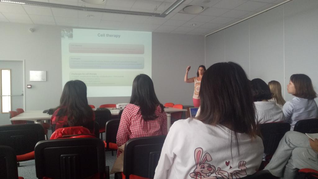 The professor who studies in cell therapy used RF disease as a predominate example in his lecture. RF mainly causes blindness in children due to the death of RFC which can’t be regenerated. If new cells are cultured in vitro and injected beneath photoreceptor cells with a cover of gel, the disease can be cured successfully. CRISPR/Cas 9 (a gene editing technology) is an emerging technology in recent years and it has been wildly used, especially in the treatment of single-gene diseases because of its operability. A new skin treatment technique can be used to treat skin damage caused by burns, inflammation and so on, by adding specific cytokines to induce stem cells to differentiate into skin cells, therapeutic purpose can be achieved. This undoubtedly brings good news to patients with skin damage. During the listening, the students actively asked questions. Their oral expression skills improved rapidly and also their professional knowledge increased. Those questions which hit the key points were well received by the professors.