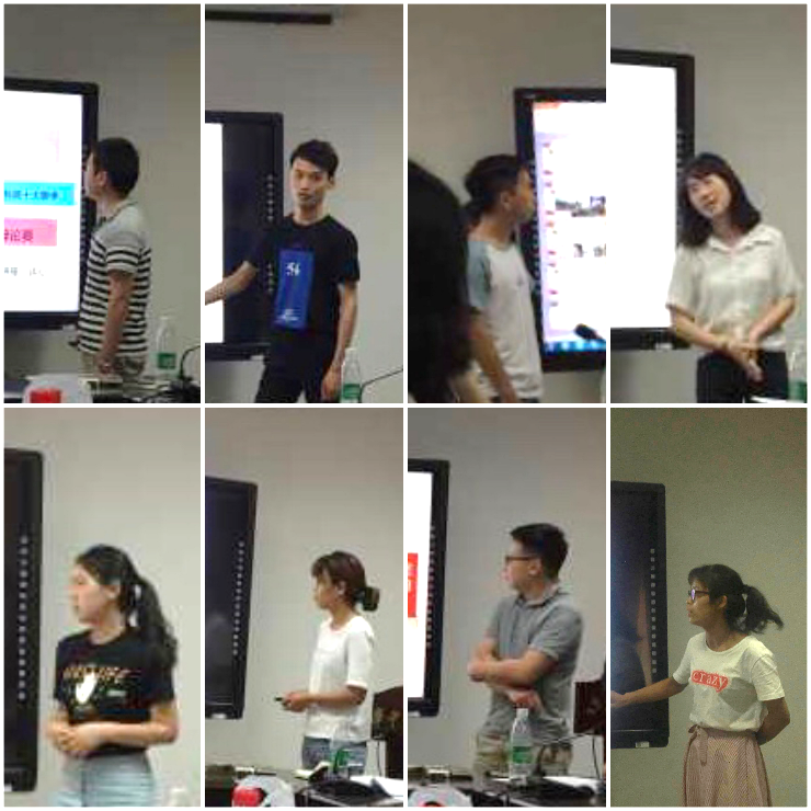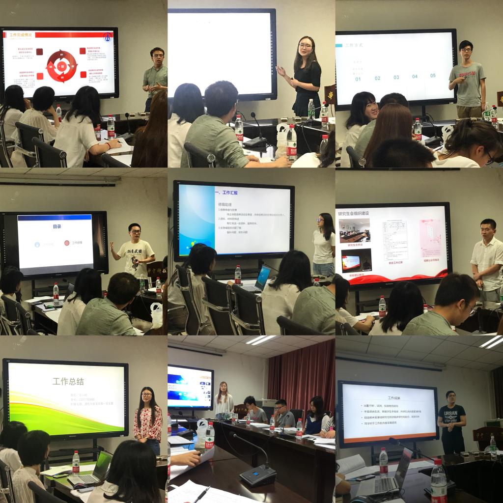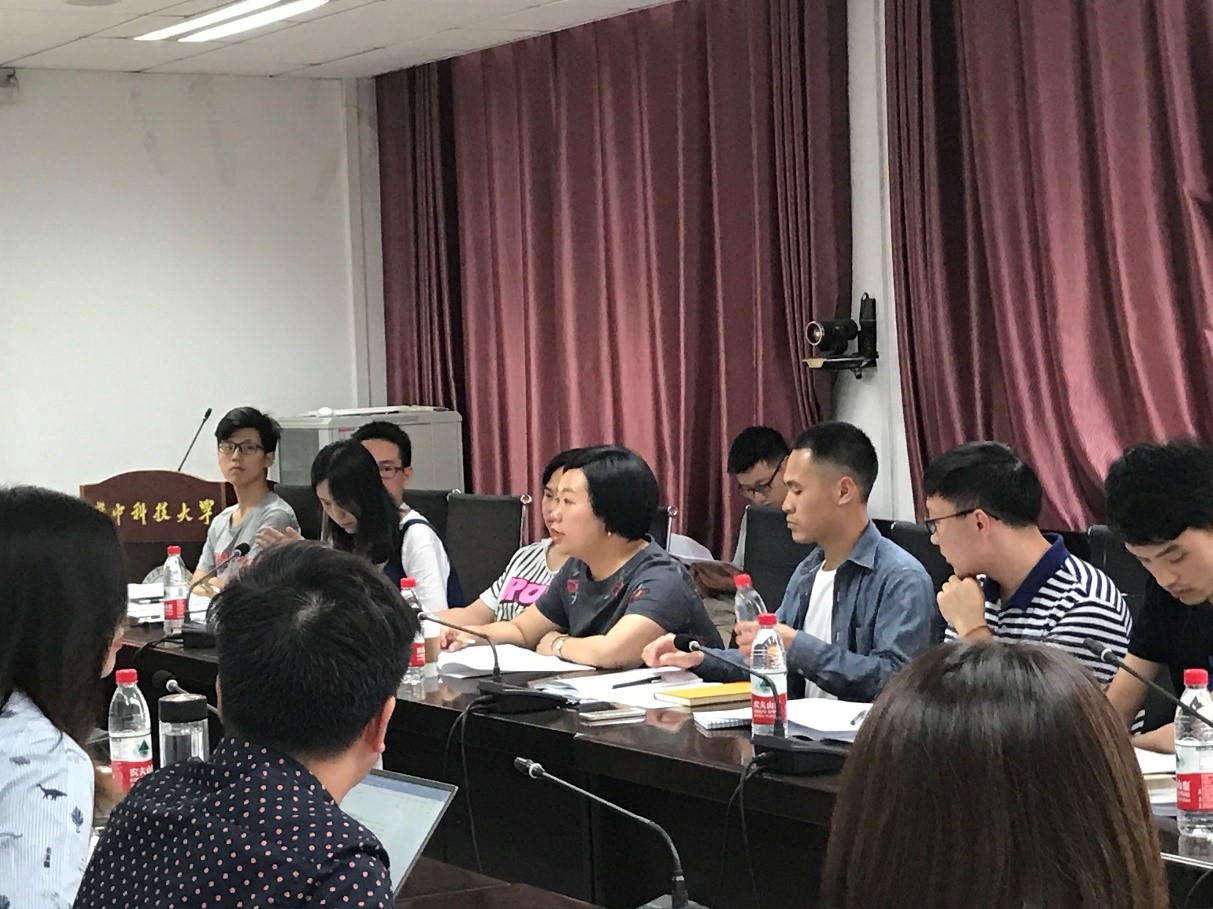 研究生党务中心主任何帅丞同学对《华中科技老员工命科学与技术公司研究生德育助理工作(2018上)述职报告》文件中考核办法、评定细则和考核打分表进行解读。本次考核由孔姝担任评审小组组长,其余成员共同参与互评打分,对研究生德育助理与团队德育助理工作进行考核。