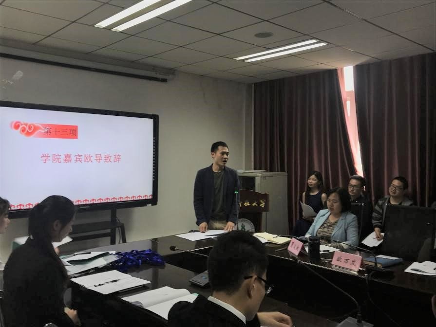 辅导员欧万发对本次会议顺利进行表示肯定,祝贺新一届主席团的产生,并对研会成员们就如何做好一名科研及员工工作全面发展的研究生给出中肯建议,对研会下一年的工作提出美好期望。