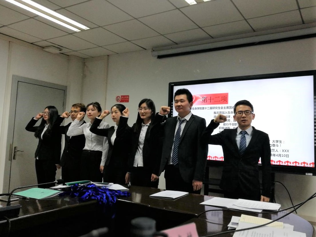副主席周钰宣读了《yl7703永利研究生会主席团选举办法》。候选人依次进行竞选答辩。大会坚持民主集中制原则,与会研究生代表采取无记名差额选举的方式,投票产生了第十二届研会主席团成员,新一届主席团成员们在全体研究生代表面前庄严宣誓。