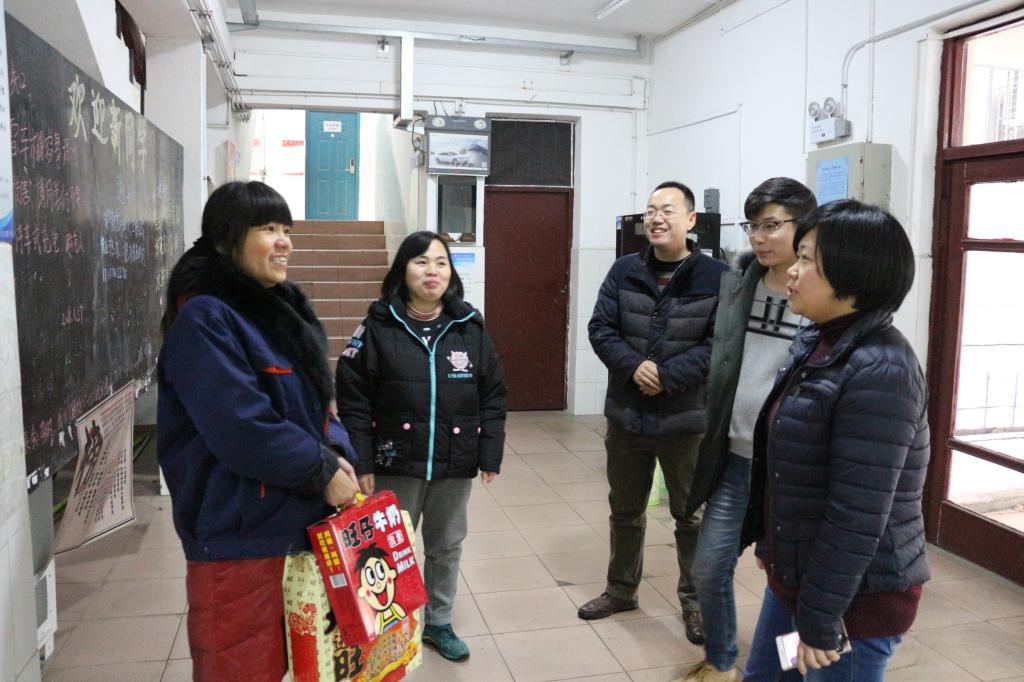 1月31日下午,学工组辅导员在党委副书记孔姝的带领下,走向yl7703永利员工所住宿舍楼栋,向楼栋宿管阿姨送上新春的慰问和祝福。