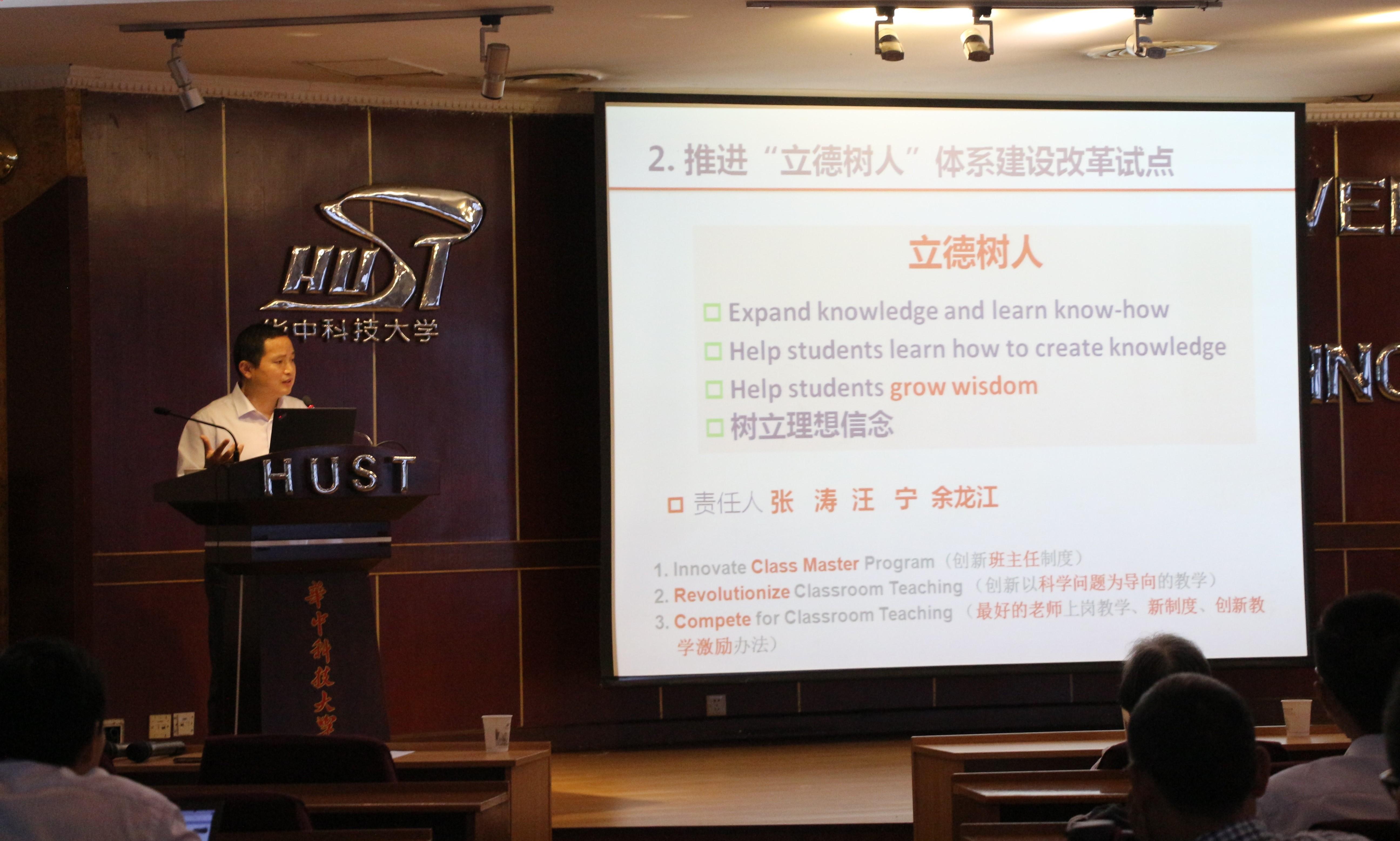 副经理余龙江做了题为“创新完善‘立德树人’体系,培养高素质拔尖人才”的主题报告。在报告中,余龙江分析了当前公司产品工作的新形势和新任务并提出了自己对立德树人体系建设的思考。他指出,新形势下,大学的使命应当回归于“立德树人”这一根本任务上来,大学发展定位应当着眼于“双一流”建设,把握新工科建设的教育发展机遇,用信息化促进教育发展趋势。他从优化培养方案、修订教学计划、高水平教学计划的实施、培养方案的严格执行、立德树人体系的完善等各方面提出了一系列问题和对策。