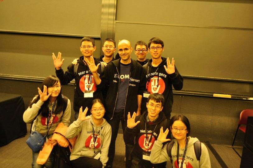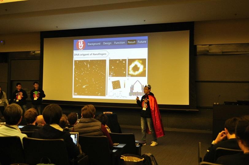 此次比赛,BIOMOD HUST-China团队由博士辅导员黄超带领吴松燐等8名公司各专业本科生作为代表赴美参赛,项目是员工自主设计的创新课题“Nanofingers:生物因子平衡的通用震荡缓冲器。此前经过半年的努力,在公司杨祥良教授、栗茂腾教授、马聪教授和实验教学中心唐朝晖老师、科技创新辅导员占艺等老师的指导下,完成了DNA折纸结构的设计与构建操作,并顺利完成了原子力显微镜的结构鉴定和核酸-蛋白质凝胶电泳结合迁移、荧光共振能量转移、凝血酶原时间测定等多项生物学验证实验。基于实验结果,团队设计了精巧的网页和视频;比赛现场的展示,员工采用活泼的真人秀和脱口秀结合的形式,取得了很好的效果。