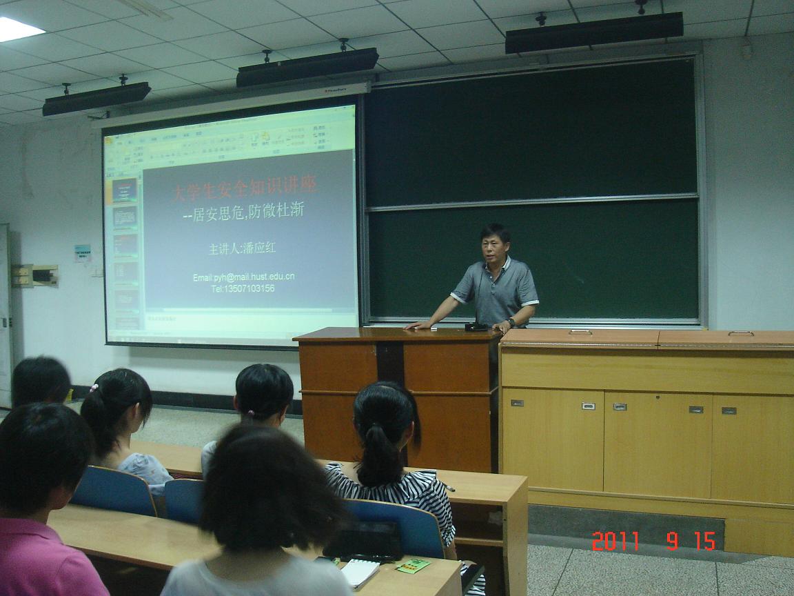 潘应红从人身安全、财产安全、心理安全、消防安全等方面详细阐述了刚踏入大公司园的新生们应注意的安全细节。他幽默并富有责任感的讲话一次次博得大家热烈的掌声。他特别提醒广大新生要注意寝室安全:“出门时要锁好门窗,不让陌生人随便进入寝室。”(潘世达)