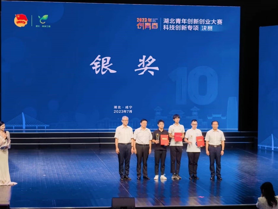2023年“创青春”湖北青年创新创业大赛科技创新专项,由团省委、省发改委、省教育厅、省科技厅、省经信厅、省政府国资委、咸宁市人民政府主办,省青创中心、省青企协、省青创基金会、省企业团工委、咸宁市委承办,由中建三局提供支持,累计吸引230余个项目参赛。此次大赛中,众多优秀的项目团队展开了激烈的角逐。华中科技老员工命科学与技术公司国家纳米药物工程技术研究中心杨祥良、甘璐、雍土莹老师指导李新、吕蔚林、别娜娜、张晓娟等同学组成的“锦囊妙剂”团队从众多团队项目中脱颖而出,荣获银奖。
