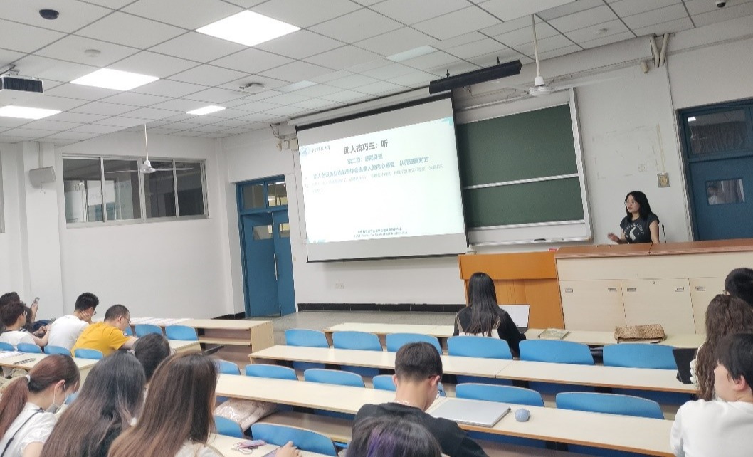 心理咨询中心罗晓彤老师为大家开展了心理科普讲座,分享了常见的心理问题、起因及发展阶段。她指出,心理疾病普遍存在,同学们要善于关注自己及周围人的心理状态,发现问题及时向心理咨询中心寻求帮助。
