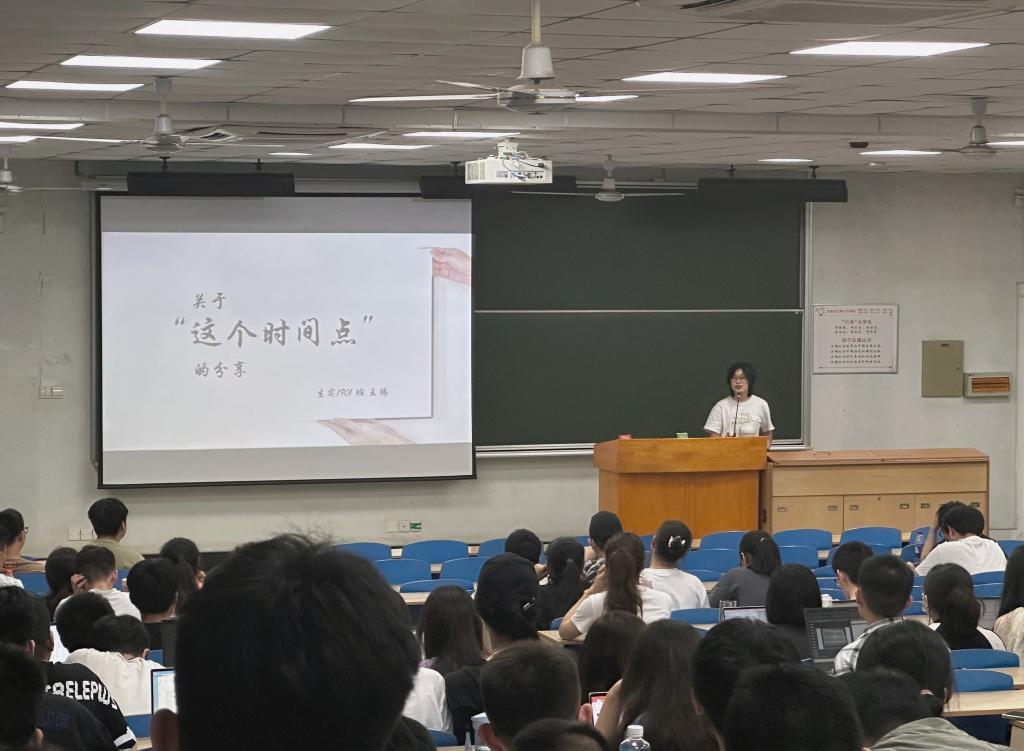 本次大会还邀请了来自生实1901班的优秀毕业生王腾学姐进行经验分享,她以“关于‘这个时间点’的分享”为题,提醒大家做好个人总结和规划,并详述了后续升学选择等过程中可能遇到的问题和细节,鼓励学弟学妹们做好信息积累,保持自信,大胆绽放。