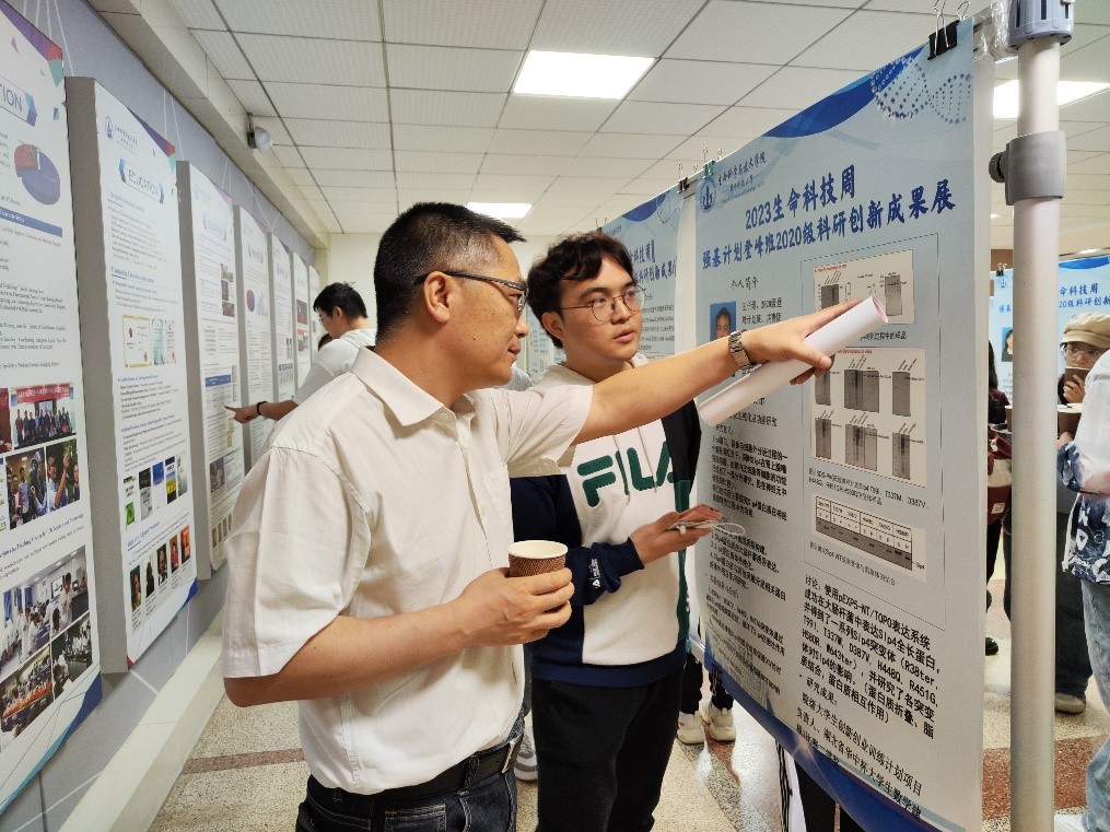 6月5日晚, “生命双创周”系列活动之强基计划登峰班2020级科研创新成果展在东十一楼二楼中厅与221会议室成功举办,现场包括科研创新成果展示、师生交流,学习生活心得分享以及颁奖仪式等环节。公司党委副书记兼副经理卢群伟教授、公司党委副书记占艺副教授、本科生院黎丽老师受邀参加。生物医学工程系丁明跃教授、王敬教授,生物科学系张贤钦教授、徐承启教授、苏莉教授,生物技术系付春华教授、张后今教授,生物信息与系统生物学系杜伟教授,纳米医药与生物制药系胡军教授、赵彦兵教授以及教务科、学工组部分教师代表参加活动。