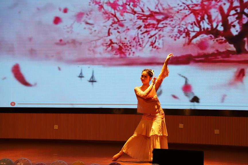 来自yl7703永利生物学硕2205班的姚敦洁同学,凭借《流水桃花》中优美的舞姿,带领我们走入了室外桃源,她也夺得了此次舞林大会个人组的第一名。