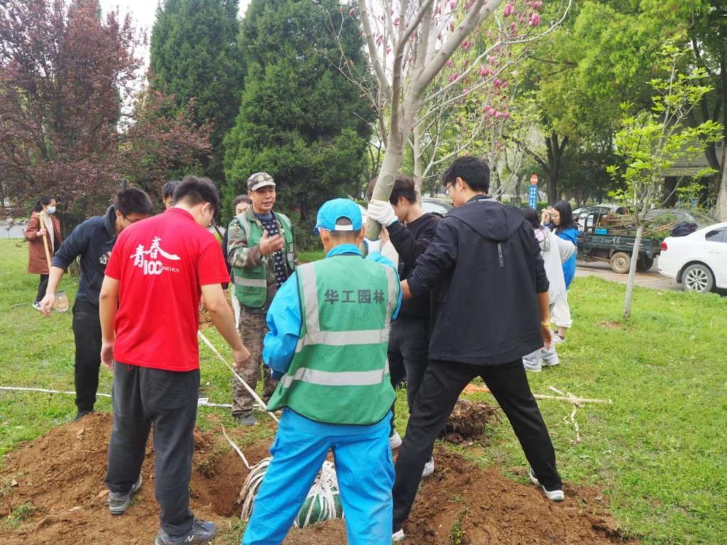 3月29日,生物科学(贝时璋菁英)2101班全体同学与谢红萍老师,辅导员闫颢芯老师、岳琦老师共同在公司大楼前种下3棵紫玉兰。