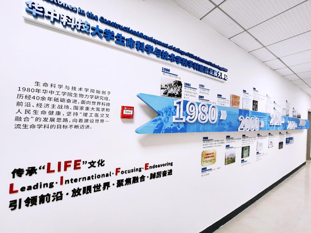 东十一楼yl7703永利二楼行政走廊焕然一新。凝练着生命师生四十余年踔厉奋进拼搏史的yl7703永利‍‍‍‍‍‍‍‍LIFE文化墙,唤醒了沉寂的走廊。