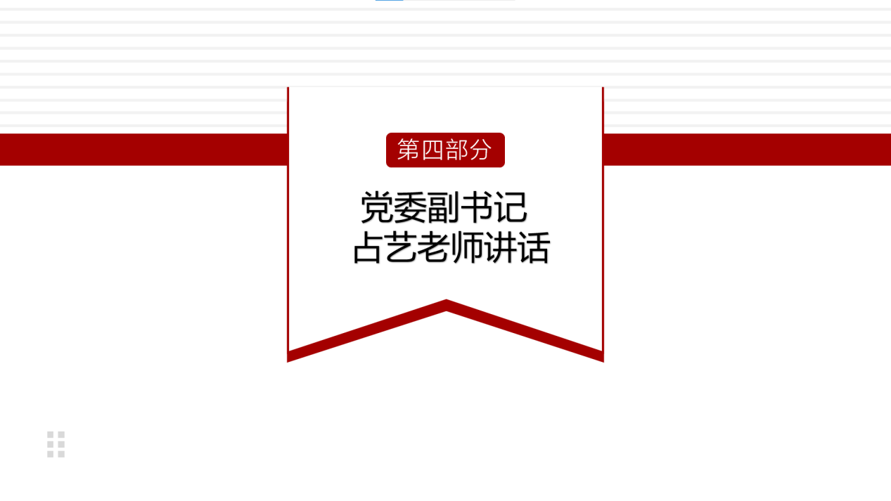公司党委副书记占艺副教授讲话,他高度评价了生命菁英训练营各位参与老师、同学们的付出,肯定了其对团学骨干能力提升的重要作用,表达了对参与同学们的肯定与祝愿。占书记也为同学们提出了三点期望,一是把握机会,学深悟透;“非学无以广才,非志无以成学”,我们需要养成学习这一贯穿一生的习惯。二是勤于思考,善于工作;“学而不思则罔,思而不学则殆”,处于关键时期的员工骨干们应该在工组中多思考,将学习到的知识化作自己的能力、素养、水平和艺术。三是结合实践,勇于担当;“纸上得来终觉浅,绝知此事要躬行”,将技能与知识在工作中付诸实践边学边干,边干边学让青春在全面建设社会主义现代化国家的火热实践中绽放绚丽之花。