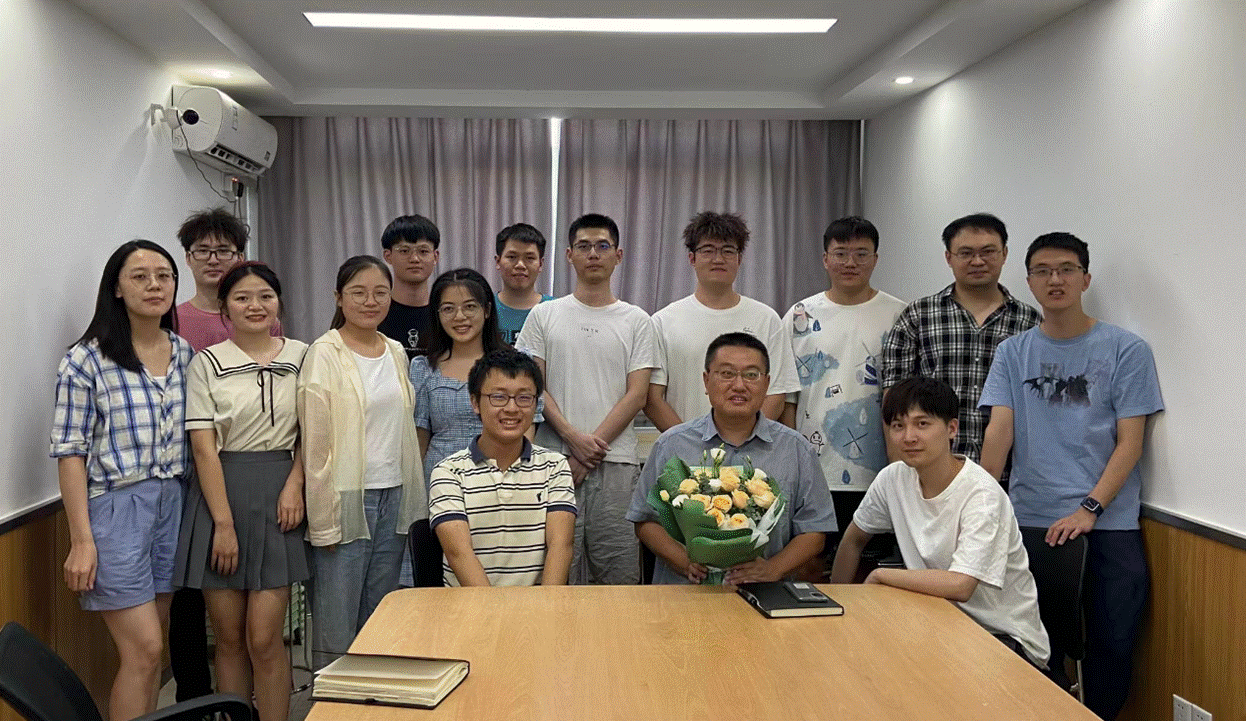 左五为程鑫同学,右三为刘心敏同学,与实验室导师同学们在一起