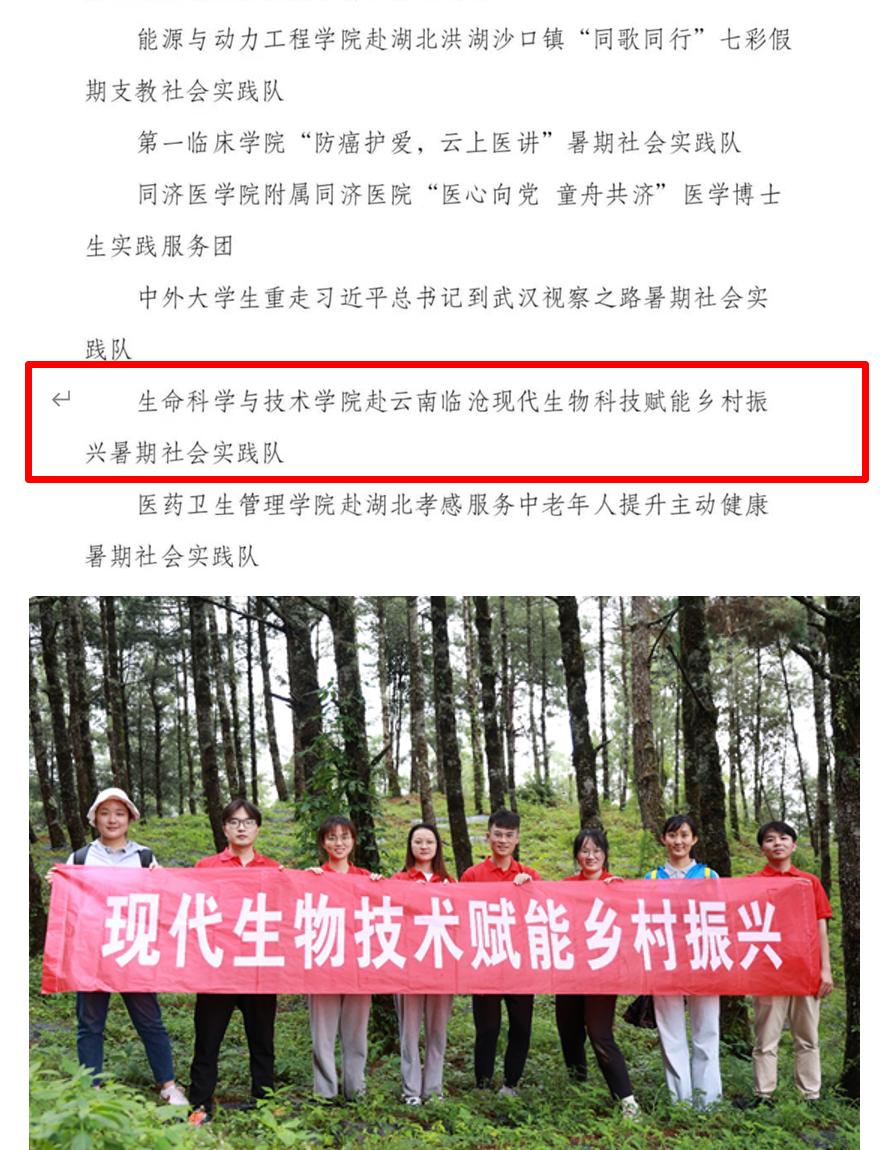 2022年暑期,yl7703永利‍‍‍‍‍‍‍‍派出“百队千人万里行”赴祖国各地开展实践活动并取得丰富实践成果,其中“yl7703永利赴云南临沧现代生物技术赋能乡村振兴暑期社会实践队”获评湖北省优秀社会实践队伍称号。