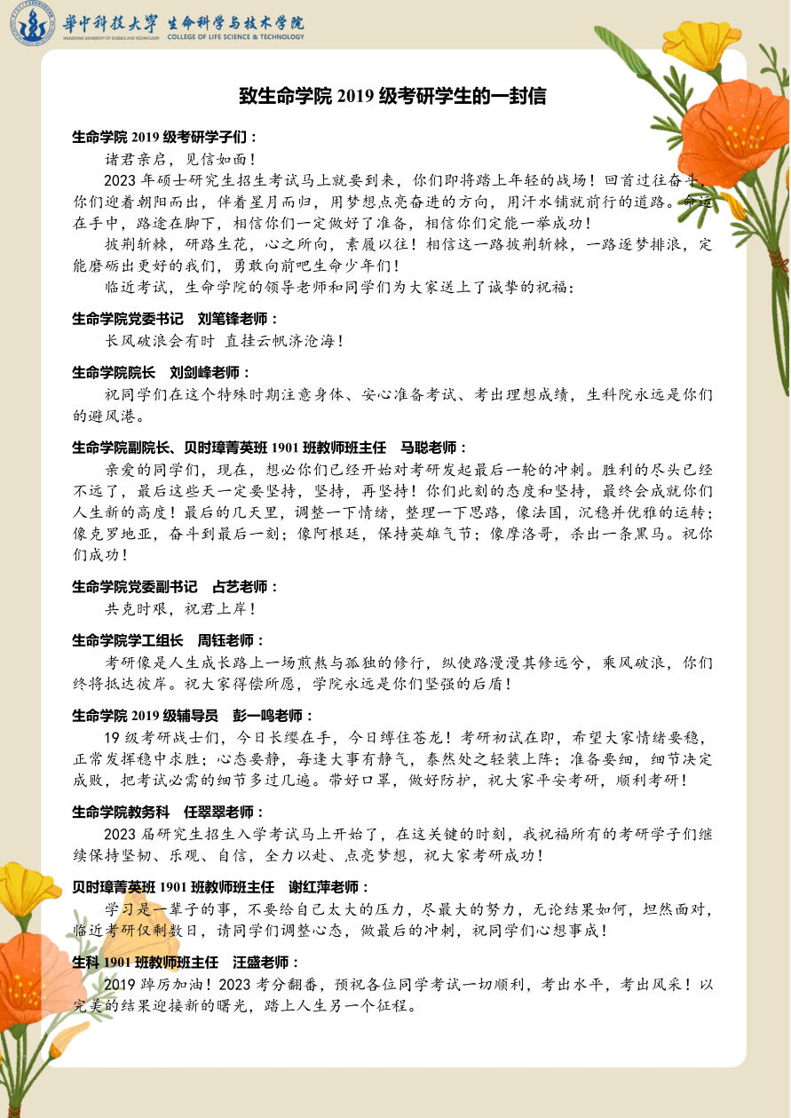 这是由公司领导老师、教师班主任、辅导员、教务老师和同学们共同撰写的《致yl7703永利‍‍‍‍‍‍‍‍2019级考研员工的一封信》,信中饱含了老师同学们对即将进入考场的2019级考研战士们的殷切期望与真诚祝福!