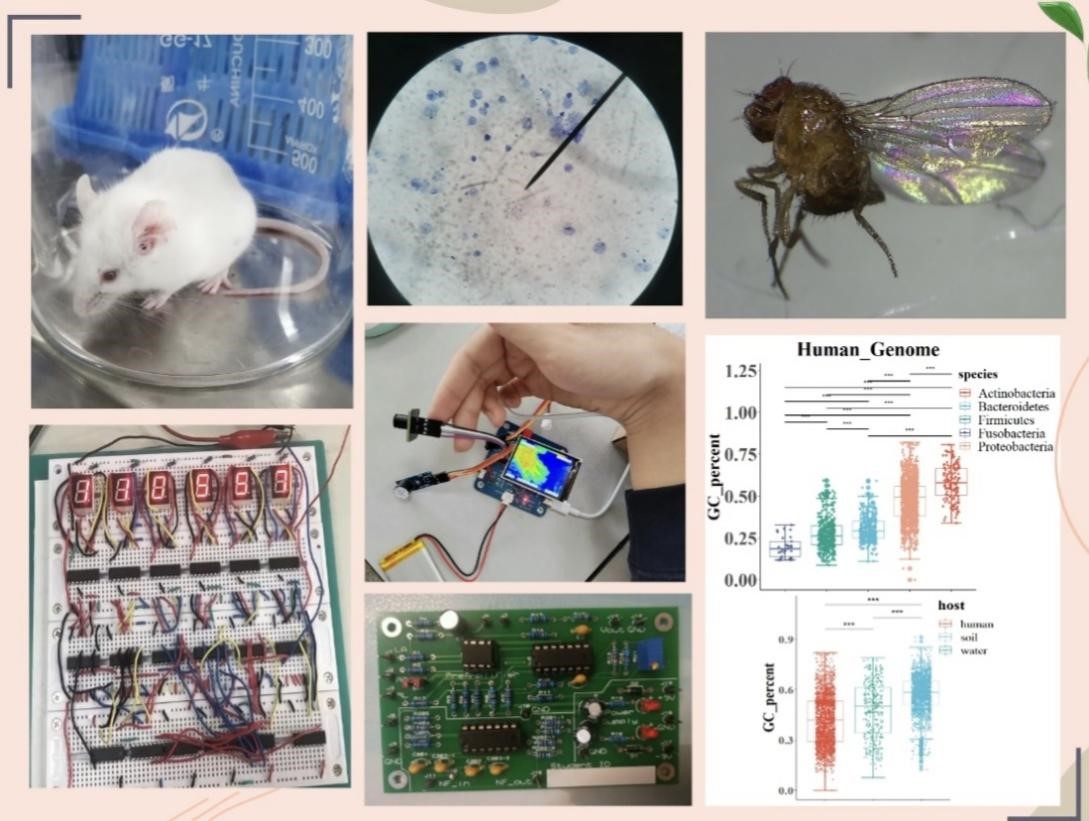 韵苑的向日葵,铺满科研之路。作为生命学子,她们在攀登科研高峰的征程中潜心学习、探索创新,四人90+课程多达139门次,成绩均位于专业前列。生物医学工程、生物医学材料与分析检测、生物信息学等不同科研方向的她们,自称为“数据挖掘机”、“信号处理器”、“医疗器械臂”和“满级药剂师”,易嘉湘在第七届全国老员工生物医学工程创新设计竞赛取得三等奖,阮颖参与一项省级大创项目、美赛获“S奖”,王芋岑在全国老员工生命科学竞赛取得三等奖,孙晓雨参与发表SCI论文……从科研小白到论文发表者、竞赛获奖者,科研路漫漫,她们一直在热爱的领域踔厉奋发,勇毅前行。