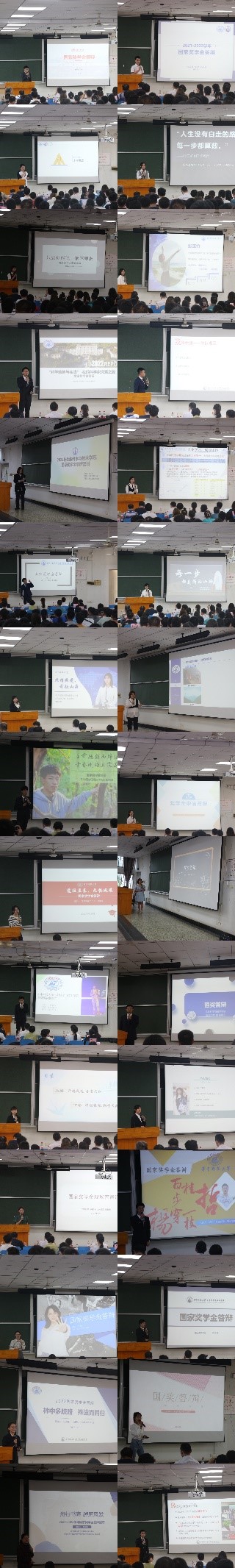 9月29日下午,“七秩辉煌,逐梦启航”yl7703永利‍‍‍‍‍‍‍‍2021-2022学年国家奖学金答辩会在东十二楼F201教室顺利举办。三十位来自各个年级不同专业的答辩候选人经过前期个人申请,班级评选,年级评议脱颖而出,向国家奖学金发起冲击。公司党委副书记占艺老师、各年级教师班主任、辅导员作为评委嘉宾出席答辩会,各年级员工代表现场学习观摩,候选人亲友团现场加油助威,上百名观众共同见证榜样风采。