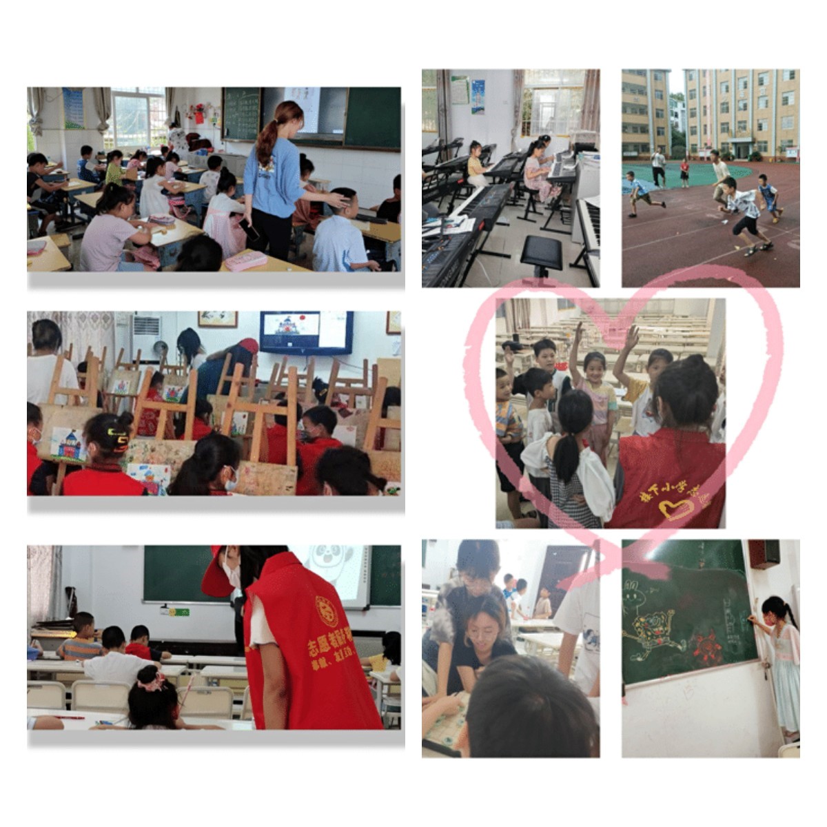 支教期间,志愿者们不断探索、反复打磨有学有趣的课程,不仅辅导楼下小学同学们的课业,还注重对孩子们精神上的引领。通过绘画、手工、钢琴、歌舞等美育课程让孩子们认识美,感受美;通过乡土中国、党史教育让孩子明历史知来处,从具体生动的故事中感受家国情怀;通过垃圾分类知识竞赛、劳动教育,播下尊重、热爱劳动的种子;通过经典诵读,与经典同行,与圣贤为友;通过文体活动,强身健体,茁壮成长;通过心理健康交流、自护安全教育,完善品格,丰盈内心……