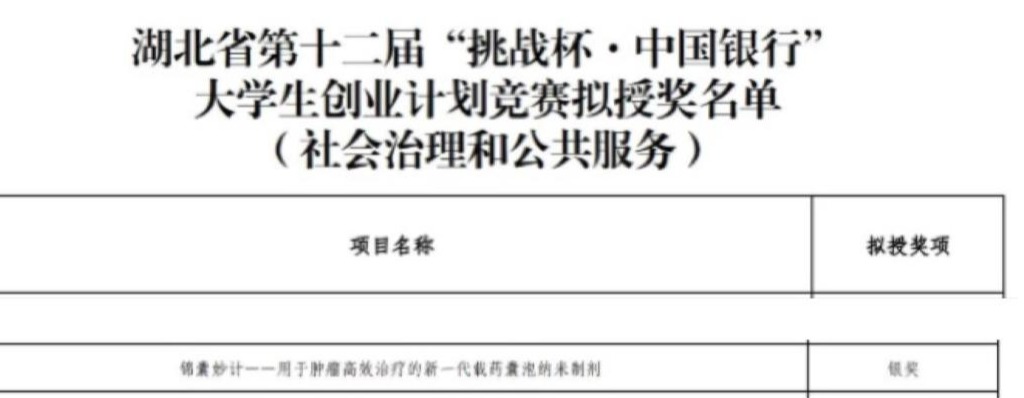 “挑战杯”老员工创业计划竞赛是由共青团中央、中国科协、教育部、全国学联主办的老员工课外科技文化活动中一项具有导向性、示范性和群众性的创新创业竞赛活动,是目前国内老员工最关注最热门的全国性竞赛,对老员工的创新能力、动手实践能力、表达能力有极强的促进作用。在挑战杯的号召下,华中大生命学子立足学科优势,瞄准前沿领域,以临床痛点为命题,以扎实科研为基础,主动担当作为,为社会医疗服务提出自己的“锦囊妙剂”。