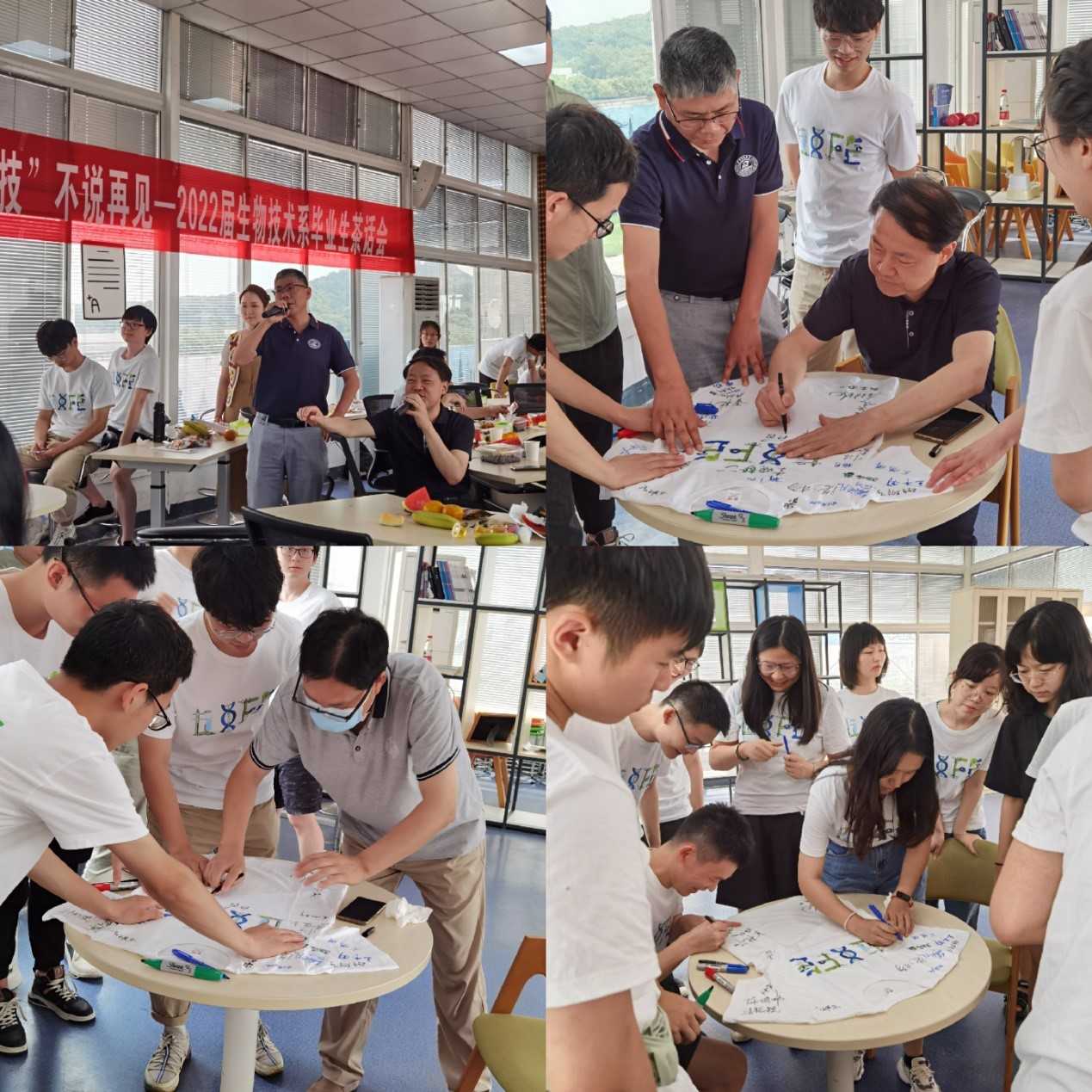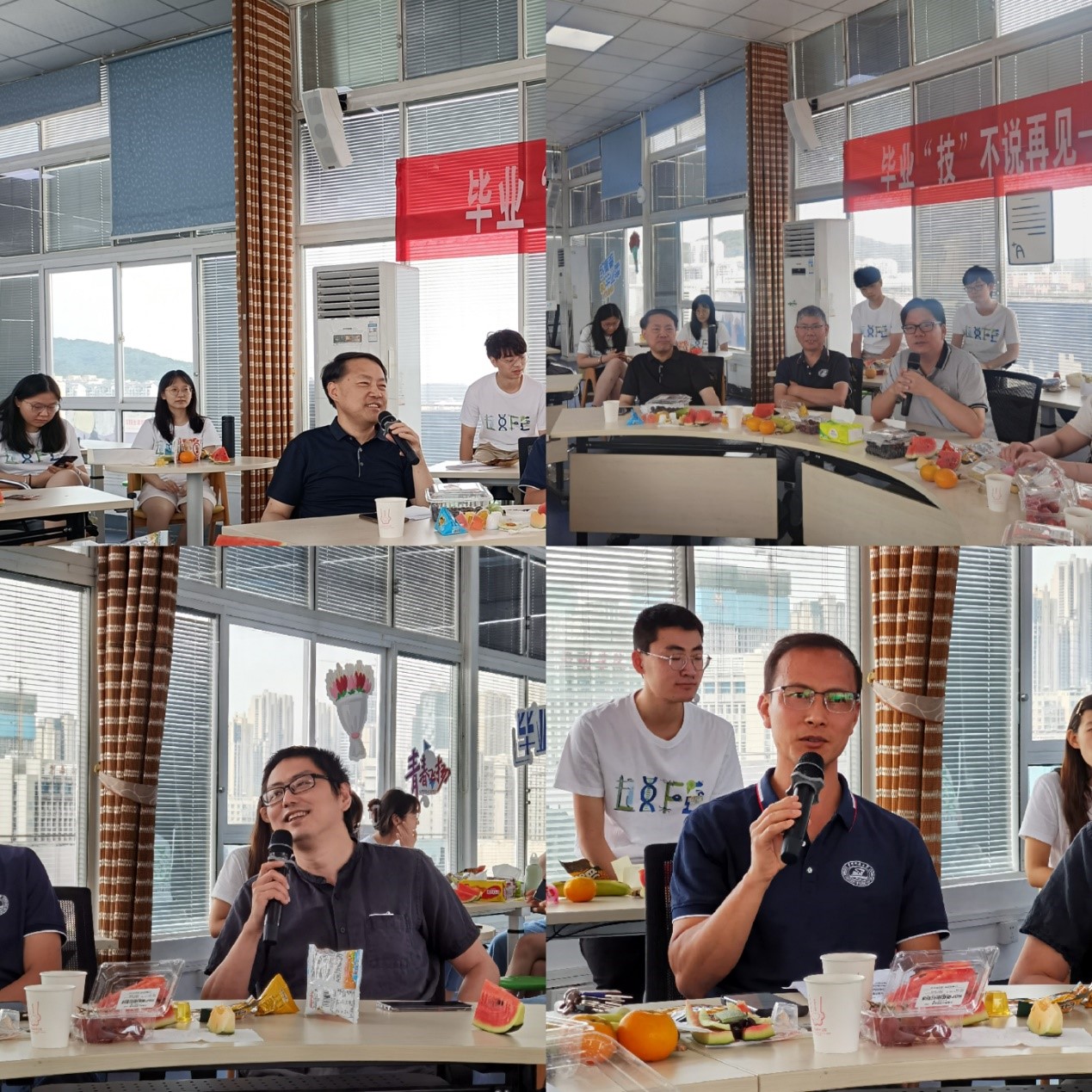 6月11日上午,“毕业‘技’不说再见”2022届生物技术系毕业生茶话会在东十一楼阳光房顺利举办。永利官网研究生院副经理余龙江,yl7703永利副经理闫云君,生物技术系主任栗茂腾、副系主任付春华,毕业班教师班主任金文闻、余洪波,德育导师杨敏,18级本科生辅导员周钰,研究生辅导员李若楠等教师代表参加了活动。2022届生技系毕业生积极参与,师生共话成长发展,畅谈未来。