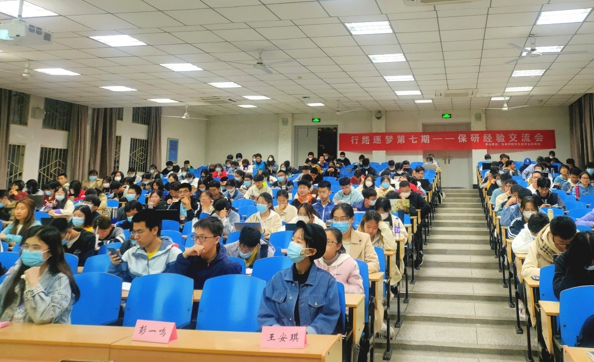 生卓1801班王龙以“用一年不长的时间做一件终生难忘的事”为主题,介绍了公司研究生支教团取得的成就与荣誉,讲述了自己通过研支团方式保研的经历,强调了“扶贫先扶智”的意义;生药1801班邓艺涵的分享简明有力地阐述了保研的核心装备,鼓励同学们打好成绩和科研的基础;生技1801班石家诚的心得分享展现了熠熠的科创竞赛风采;生信基地1801班黄士娟以“脚踏实地,心向未来”为主题,讲述了跨保的经历,为有意向的同学指点迷津。在场同学反响热烈,积极提问。生实1801班王丰羽因故无法到场,以视频方式介绍了跨专业保研到人大法学的经验;生信基地1801班高艳也在活动交流群中分享了精心制作的ppt。