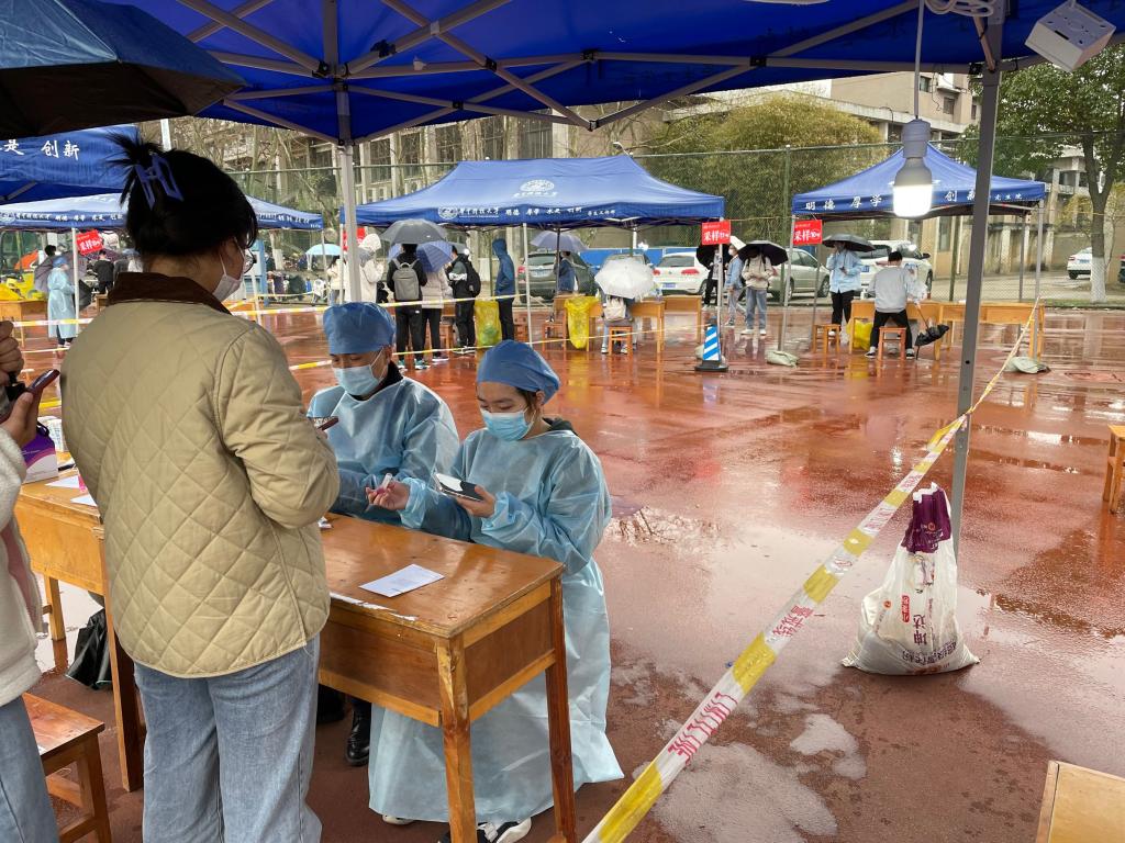 冒着淅淅沥沥的小雨,我在今天早上来到东操担任核酸检测的志愿者。雨越下越大,操场的人越排越多,为了让操场上冒雨排队的同学老师更快地做上核酸,尽管已经手脚冰冷,但我们一直在加快速度,最后看着操场上的人越排越少,一种成就感和奉献感涌上心头。其实以前我已经担任过很多次核酸检测的志愿者,每次有空我都会积极地参与志愿者活动,在充实生活的同时也帮助了他人!