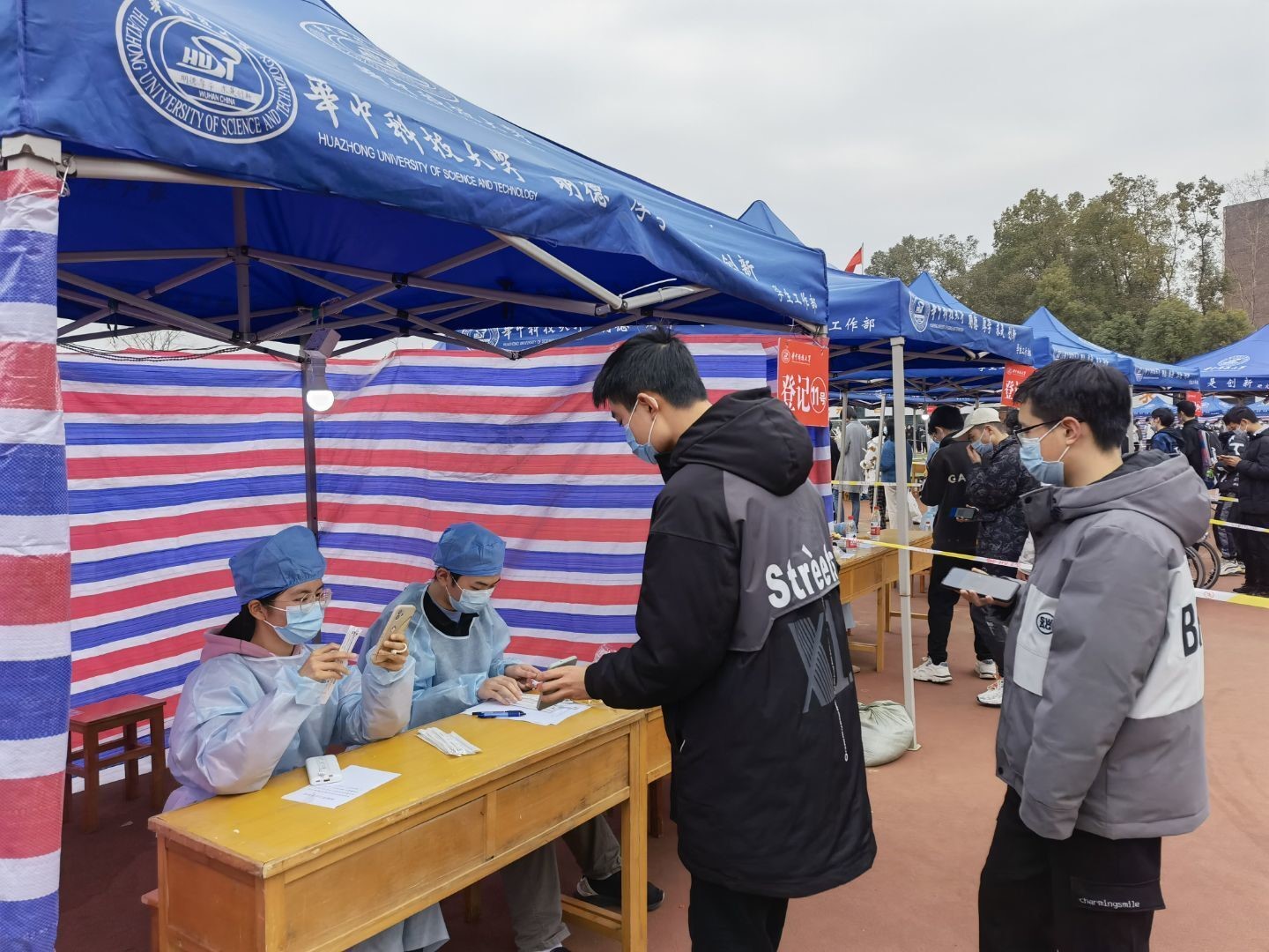 今天天气有些阴冷,但我和我的室友还是早早的就到了东操采样点参与到志愿服务工作中,公司很贴心的为我们准备了丰富的盒饭和小零食。我们换上防护装备,简单分组后,“流水线工人”正式上岗。工作并不算难但很考验我们的默契,刚开始看到远方盘旋而来的队伍有些紧张和手忙脚乱,但熟悉过后我们的动作越发迅速,很快就完成了任务。虽然待检测人员众多,工作量很大,但短短一个小时内盘旋的队伍就已经变成了零零散散来的人群,不得不让人感叹这就是“华中大速度”!经历了这次志愿活动,我感受到了医护人员的辛苦,也感受到了为人民服务的自豪感,幸福感。我以后还是会愿意继续为社会为公司为身边的人们献出自己的微薄之力,但更真心希望世界不再有疫情。