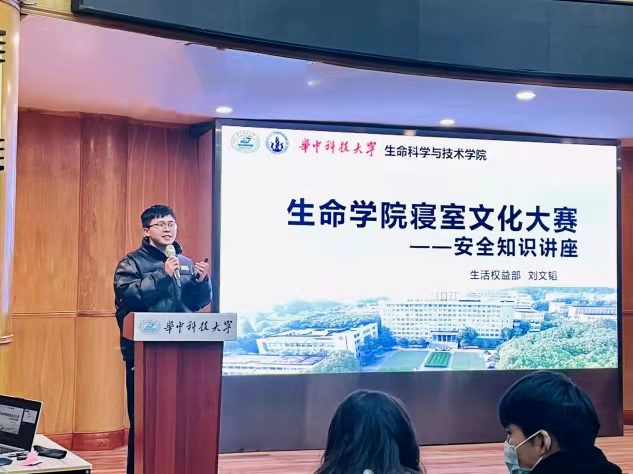 答辩结束后,生活权益部负责人刘文韬作安全知识讲座,分为交通安全、寝室生活安全、财产安全四个部分,强调在寝室生活时中,要时刻谨记安全红线,用水、用电要万分小心。在有奖问答环节同学们踊跃参与,并获得了精美小奖品。