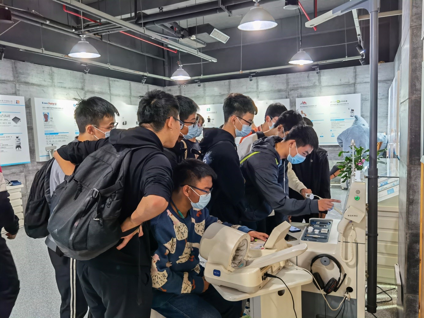 在光谷生物城创新成果展示交易馆,同学们在引导员的讲解下了解了十年来生物城相关企业开发的系列科研成果,“三层仿生结构人工血管”、“磁控胶囊胃镜系统”和“植物源重组人血白蛋白” 等国内领先的生物类和生物医学工程类科技成果都吸引了同学们驻足参观。通过参观这些生物领域的高技术产品,加深了同学们对生命科学的热爱,也对树立专业思想具有很大帮助。