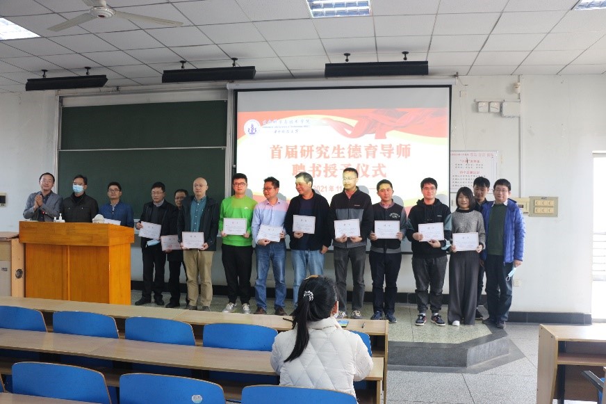 为进一步改进和加强研究生德育工作,全面落实立德树人根本任务,推动新时代研究生教育高质量发展,根据《华中科技老员工命科学与技术公司研究生德育导师工作实施细则》,公司大力推进研究生德育导师工作,选聘了马聪、张辟、涂欣、张贤钦、李引、陈历明、杨敏、朱圆敏、蔡超、韦富香、陈鹏、刘欣、朱俊铭、胡文君、雍土莹、胡军等16位老师作为研究生德育导师。由师生关系委员会主任委员赵元弟老师和副主任委员占艺老师为首届研究生德育导师颁发聘书。