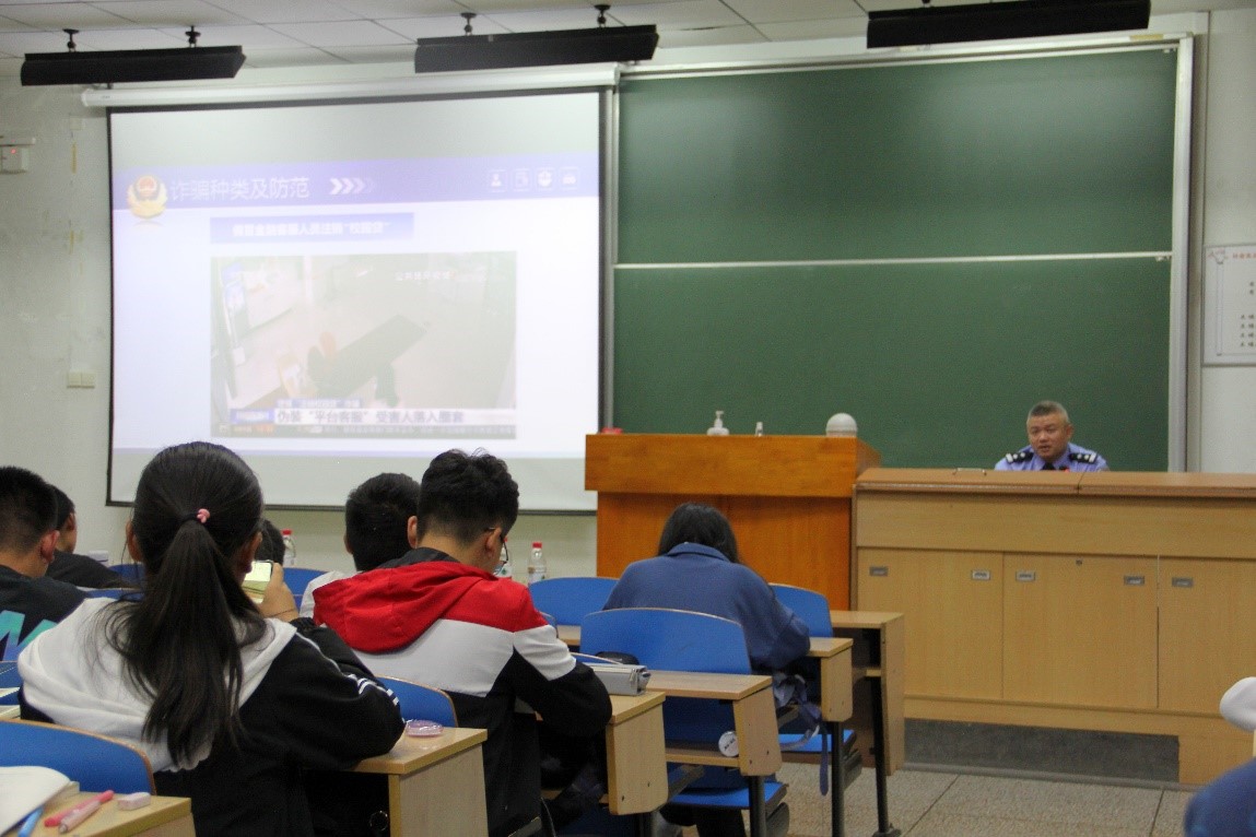 首先,辅导员王安琪介绍了本次活动的的主旨,并邀请叶所长上台做防诈骗教育讲座。