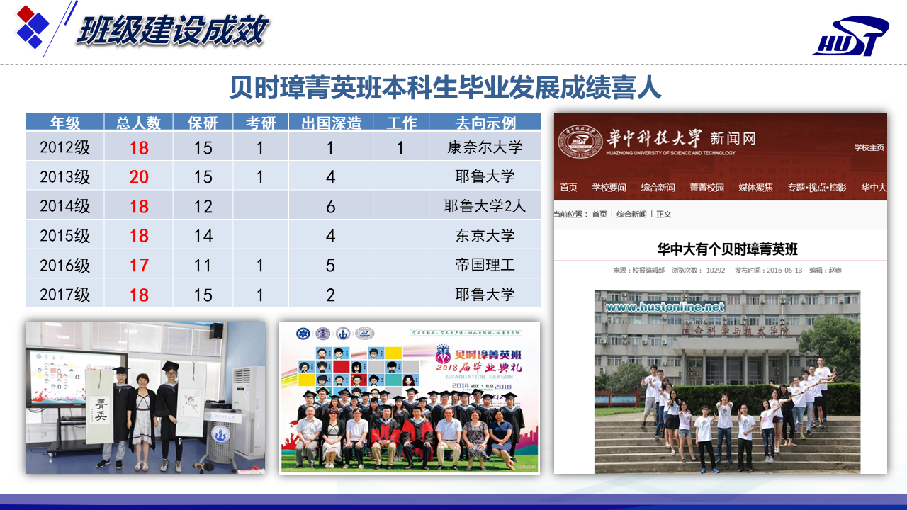 他们以梦为马,以勤为笔:秉承“学习要勤奋,学术要严谨;做人要低调,做事要高调”的班训,书写充实灿烂的大学四年,每届毕业生100%国内外知名高校和科研院所深造。
