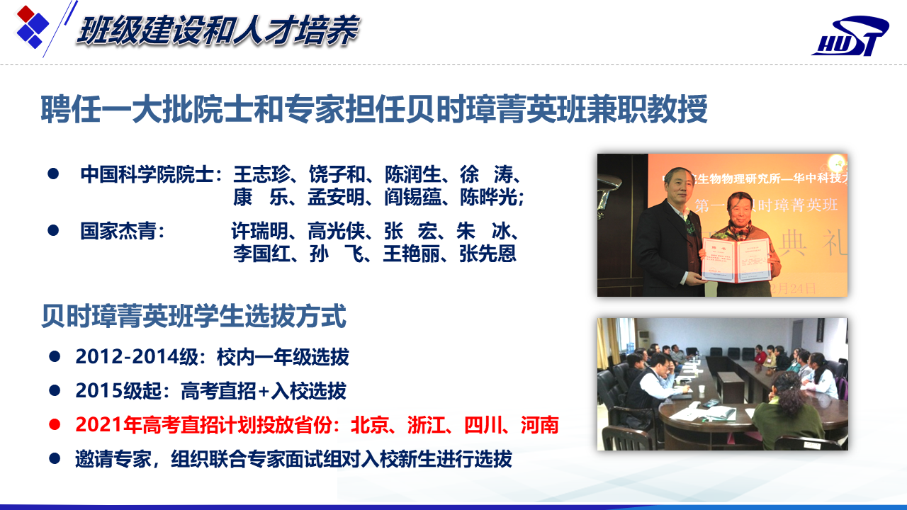 华中科技老员工命科学与技术公司同样有一个班级——贝时璋菁英班,他们读万卷书,行万里路:京汉两地联合培养,前2.5年在永利官网完成基础课程学习,后1.5年在中国科公司开展系统专业学习和科研实践训练。