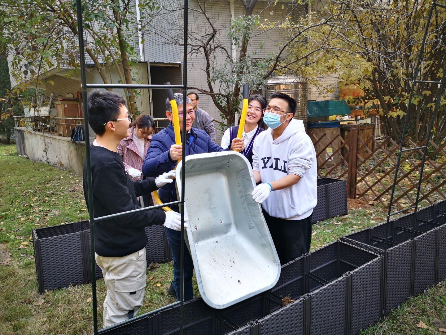 在简单介绍了课程内容后,几位老师带领员工走进yl7703永利的生命小农园,正式开展课程。同学们现场劳动整理小农园(花篮培土、地面平整、杂物清理、堆肥坑等)。