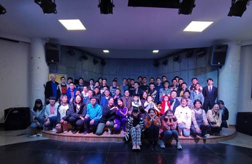 中场,游戏 “寂静中的呐喊”可难住了不少老师和同学——台上的参赛者们手舞足蹈,使尽浑身解数;台下的观众席们也跟着紧张不已、频频支招。有趣的游戏还吸引了教职工子女也上台参与,可爱的小朋友们出色的表现让观众们心生怜爱,带来了不少的掌声。轻松的游戏后,生实1701班的饶欣然学姐带来了她的经验分享,讲述了在华中大的这几年里她的感受体会。随后,生实2001班贺欢、章昊同学声情并茂的诗朗诵《热爱生命》更加使我们体会到了生命的宝贵。接下来,闫云君老师代表公司表达了对大家的希冀与期许,使同学们产生了作为生命学子的使命感与认同感,让大家受益匪浅。晚会最后在一曲师生合唱《我和我的祖国》中圆满落幕。
