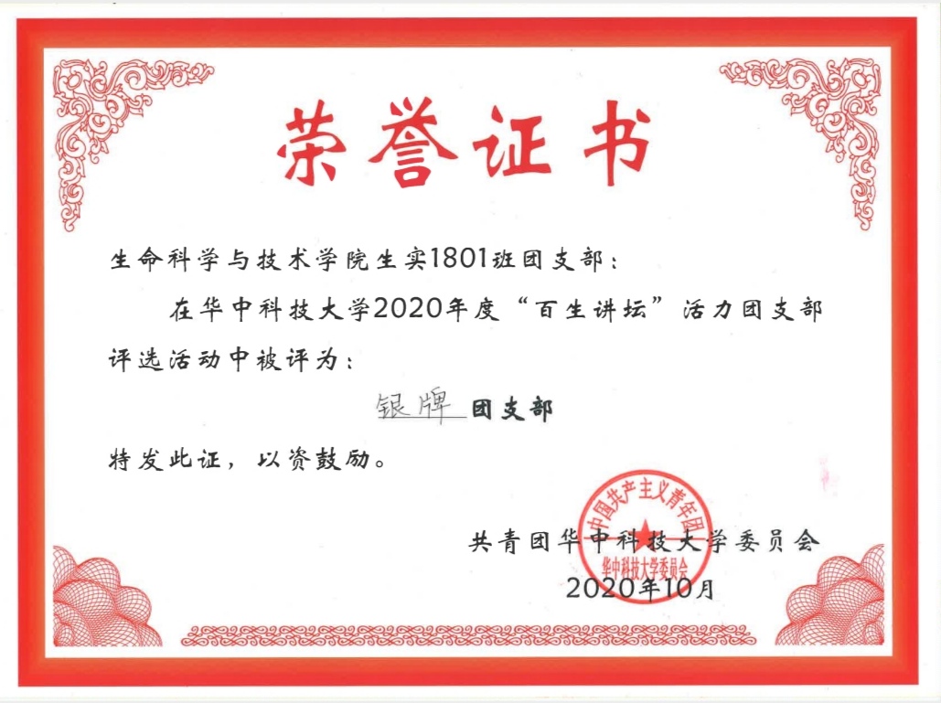 此次生实1801班与生技1801班的联合活动依托团会、班会开展,落实“班团一体化”。生实1801班团支部曾获评2020年五四表彰校卓越团支部、永利官网2020年度“百生讲坛”活力团支部银牌团支部,目前被推荐参与湖北省“百生讲坛”活力团支部评选。两个班都曾获评2019~2020年优良学风班。